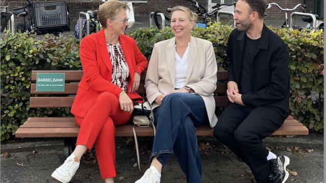 Heemstede – Voor Plein1 in Heemstede staat sinds kort een bijzondere bank: de Babbelbank. Het idee komt van inwoner Sacha Loeffen, die tijdens haar dagelijkse wandelingen ziet hoe mensen alleen op een bankje zitten. “Ik vraag me dan vaak af of ze open zouden staan voor een praatje of misschien zelfs behoefte hebben aan contact. Zelf schuif ik regelmatig bij mensen aan. Vaak ontstaat er dan een leuk gesprekje, al is het maar over het weer,” vertelt ze.