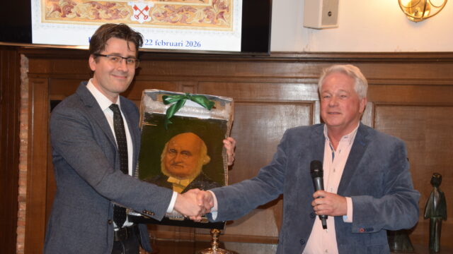Foto boven: Rick Honings ontving uit handen van Marc de Bruijn een portret van Beets.