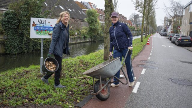 Heemstede –  Onder leiding van Dieuwke Reehoorn, bewoonster van de Blekersvaartweg in Heemstede, werden afgelopen zaterdag 29 november in de berm langs de Blekersvaartweg een paar duizend bloembollen geplant.  Zodat iedereen aankomend voorjaar vanaf februari/maart weer kan genieten van een kleurige bloemenzee langs de Blekersvaartweg.  Na ontvangst met koffie, thee en kruidnootjes in haar mooie grote tuin, ging Dieuwke met een groepje enthousiaste buurtbewoners  aan de slag met scheppen, kruiwagens en emmers vol bloembollen.  In de gehele berm vanaf de Kerklaan tot aan het bruggetje aan de achterzijde van de voormalige Vomar,  werden zowel grote bloembollen als kleine bolletjes in de grond gezet.  Een enorme klus maar dat ging heel praktisch, de een schepte een gat in de grond en de ander vulde het gat met bollen.