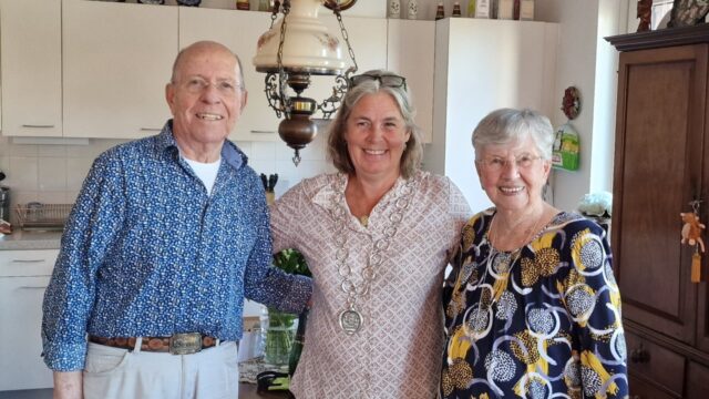 Woensdagochtend vroeg werd er al een prachtige bos bloemen bezorgd namens de gemeente Heemstede. In de loop van de middag kwam de burgemeester thuis langs bij het briljanten bruidspaar. 65 jaar getrouwd is zo bijzonder dat zij hier graag tijd voor vrijmaakte.