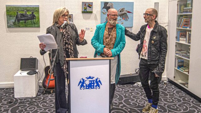 Wethouder van cultuur Eveline Stam vertelde tijdens haar openingswoord blij te zijn dat dit jaar de Roze Kunstlijn speciale aandacht heeft voor de ‘roze’ liefde.  “Want ‘roze vat al de letters samen van wat ooit begon met lhbt’, zoals de organisatie het zelf omschrijft”, sprak ze. “En gelukkig is de expositie weer compleet en is het laatste gat weer opgevuld. Want het deed mijn collega Sam Meerhoff , gemeentesecretaris Maarten Schenk en mijzelf zeer dat dit zo gelopen is.  Met spijt zien we dat er pijn is ontstaan naar jullie toe met een verzoek van de gemeente om drie schilderijen weg te halen. Want juist de Roze Kunstlijn mag best schuren en natuurlijk moeten alle kunstwerken hier een plek hebben, zonder censuur.  Daar staan wij klip en klaar achter”, legt ze uit. “Naast schoonheid mag kunst dus ook best schuren en prikkelen.  Mijn motto is ‘zonder wrijving geen glans’ en dat is gebleken deze week. Dat hoeft niet direct activistisch te zijn, maar je moet elkaar wel aan kunnen spreken. We zijn heel blij dat het op die manier is gelukt.  En als je terugkijkt op deze week, kun je stellen; kunst werkt, kunst is nodig. In die zin is het goed dat het gesprek daarover op gang gekomen is.”