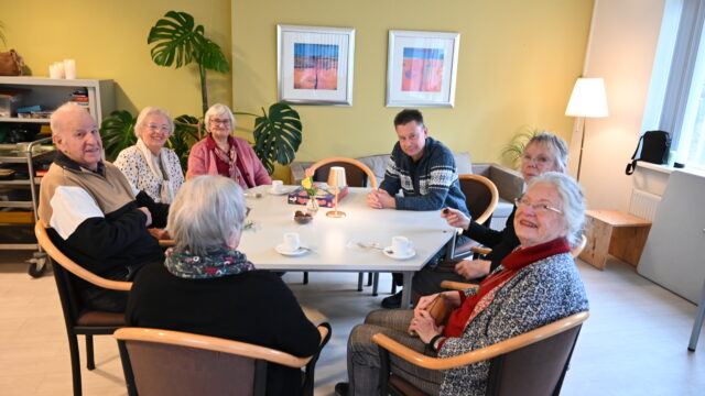 Sociëteit de Pauwehof wordt gecoördineerd door sociaal werkers Anky Weitkamp en Muriel Liket van WIJ Heemstede. Daarbij worden ze bijgestaan door enthousiaste vrijwilligers Ben Holtzer, Carlos Helder en Sylvia Cup. Er zijn altijd minstens twee vrijwilligers aanwezig bij de inloop van Sociëteit de Pauwehof. Zij genieten zichtbaar van hun werk en de sociale contacten met de bezoekers. Daarnaast is stagiair Loiss Rijs aanwezig. Zij is afgelopen juli hier begonnen. Ben Holtzer is ook nog eens heel muzikaal en was troubadour. Afgelopen december pakte hij spontaan de gitaar en werden met Sinterklaas en kerst gezellig liedjes meegezongen. Ook Carlos beaamt de gezelligheid bij de Sociëteit de Pauwehof. “De mensen vinden het gezellig om spelletjes te doen of een gesprek aan te knopen”, vertelt hij. “Een bezoekster vindt het bijvoorbeeld geweldig om te sjoelen hier, want we hebben een sjoelbak. Daarnaast wordt er lustig gerummikubd of een puzzel gemaakt. Of we knutselen wat. Je bent nergens toe verplicht, maar meedoen mag altijd”, aldus Carlos. Terwijl het gesprek gaande is – voor de aanvangstijd van de Sociëteit – staat de eerste bezoekster al in de deuropening, een half uurtje te vroeg. Ze staan al in de rij en dat is een goed teken. Snel wordt er een kopje koffie voor haar ingeschonken.
