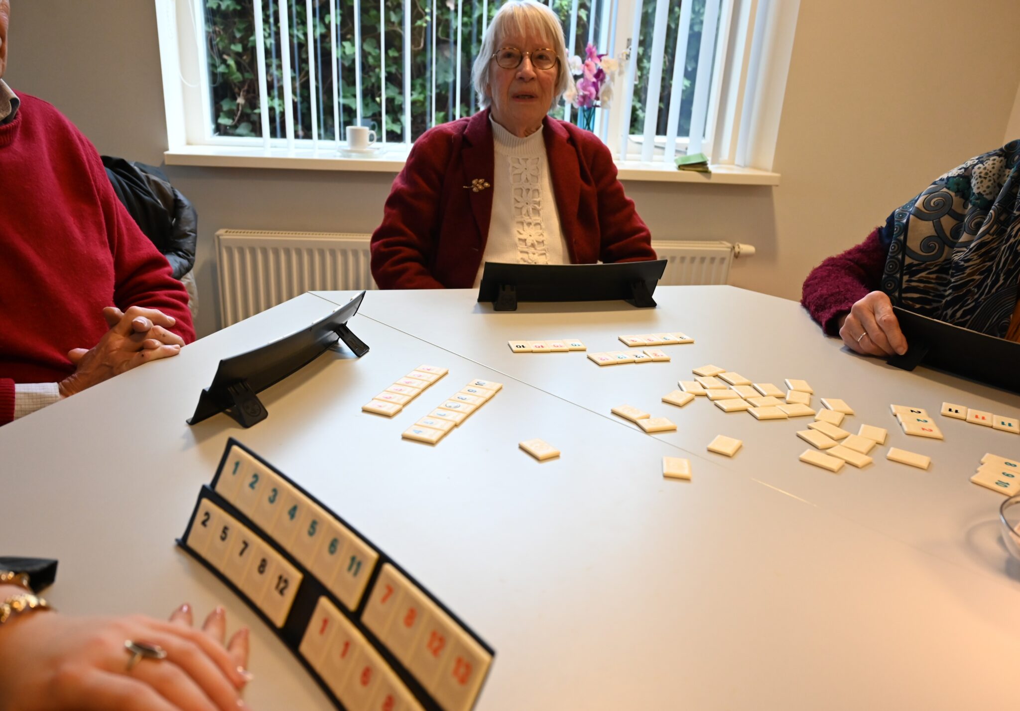 Tijd om een rondje te maken bij de bezoekers en te vragen hoe ze zelf de sociëteit vinden. Enthousiaste reacties alom als: “Als ik zin heb, kom ik gewoon.” Bij de rummikubtafel klinkt het: “Gewoon, gezellig samen een spelletje spelen, hartstikke leuk!” Kees vertelt dat hij na het overlijden van zijn vrouw hier graag komt. “Ik vind het gewoon leuk om onder de mensen te zijn”, vertelt hij met een glimlach.
