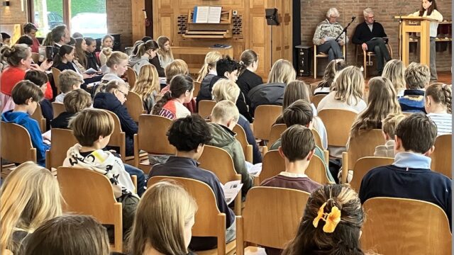 Bennebroek – Op woensdag 15 april vond in Bennebroek de jaarlijkse bijeenkomst van Adopteer een Monument plaats. Leerlingen van groep 7 en 8 van de Franciscusschool, Sparrenbosschool en de Willinkschool kwamen samen in ’t Trefpunt om stil te staan bij de lokale oorlogsgeschiedenis.