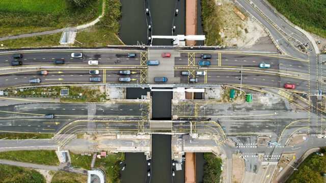 Foto: Luchtfoto van tot nu toe vernieuwde Cruquiusbrug. Foto aangeleverd door Provincie NH.