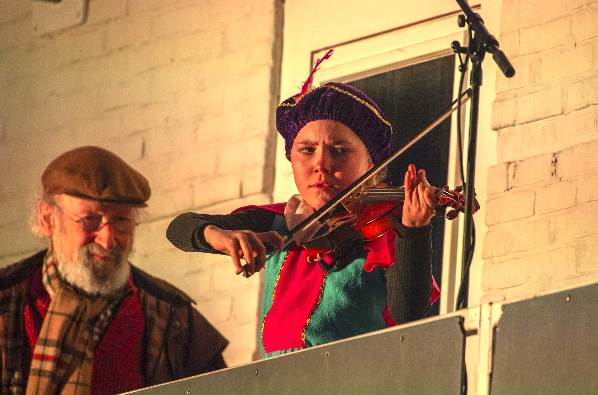 Foto 3: Muzikanten van de Vrolijke Noot spelen een sinterklaasliedje