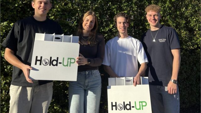 Haarlem – Hold-Up, een innovatieve studentenstart-up van Hogeschool Inholland Haarlem, introduceert een duurzame, inklapbare houder die het verzamelen en inleveren van lege statiegeldblikjes en -flesjes eenvoudiger en hygiënischer maakt. De Hold-Up houder voorkomt dat lege statiegeldblikjes en -flesjes los in de tas belanden. Hierdoor hebben consumenten geen last meer van lekkende blikjes, nare geurtjes, vieze tassen of plakkerige handen. De houder is gemaakt van stevig, volledig recyclebaar karton en past moeiteloos in bigshoppers.