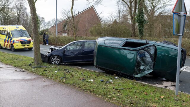 Het ongeval vond dinsdag 16 december rond kwart over twaalf plaats op de Paxlaan. Door de aanrijding kwam één van de auto’s op zijn kant terecht. Het andere voertuig liep aanzienlijke schade op aan de voorzijde.