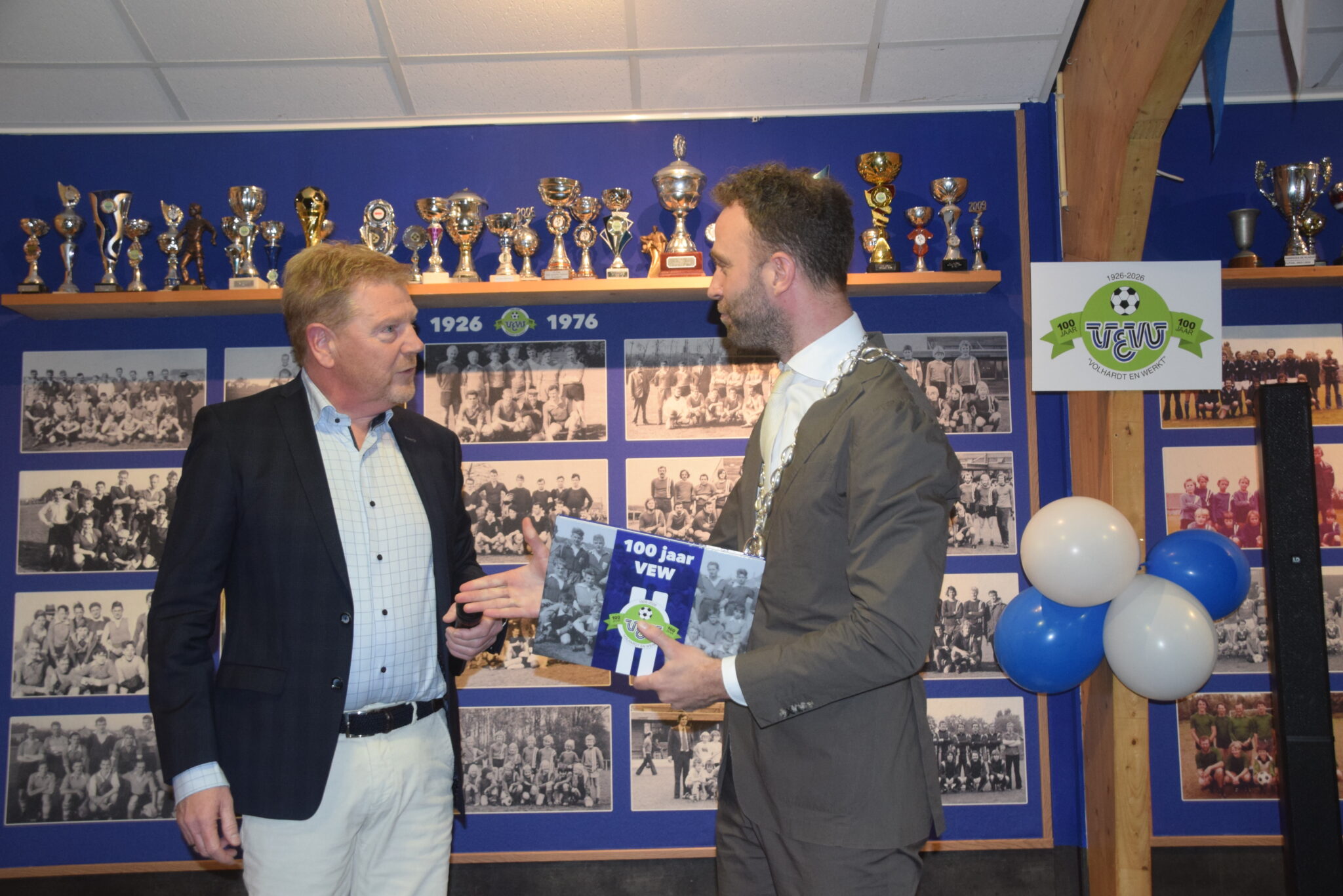 Frank Pauw, sinds 2024 bondsvoorzitter van de KNVB, wenste alle aanwezig een gezond nieuwjaar toe en sprak de hoop uit voor een mooi resultaat voor het Nederlands Elftal bij het WK in de VS, maar ook is 2026 een mooi jaar om het 100 jarige bestaan van VEW te vieren. Binnen de vele facetten van het voorzitterschap vindt Frank het ook mooi 100-jarige clubs als VEW te mogen bezoeken. Clubs als VEW zijn de ruggengraat van het voetbal. Geen topvoetbal zonder breedtesport. Clubs als VEW zijn een voorbeeld die alle lagen van de bevolking samen kan brengen. Namens de KNVB bood Frank een vaandel aan met 100 jaar VEW en het KNVB-logo.
