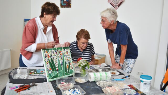 Foto: Een van de vele activiteiten in de Pauwehof: mozaïeken. Fotograaf: Bart Jonker.