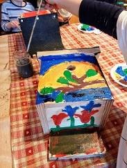 Foto: Vogelhuisjes beschilderen bij KIMT. Foto aangeleverd door KIMT.